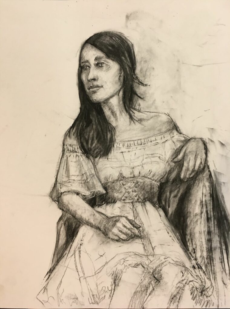 I reached out my hand and shook hers. I asked her if she had ever modeled before. She said, “No,” but she was excited nonetheless. I explained to her how it works, that she could use the bathroom straight ahead and to the left to change into her robe. “We’ll take several short poses, maybe five minutes each, and then move into a longer twenty minute one. After a short break, we’ll do an hour. Don’t worry; we’ll give you plenty of breaks.” She grabbed her bag and headed to the bathroom while I put in a Miles Davis CD. The music slit the air, trumpets filling in the quiet spaces of the open room. We had been meeting up here each Tuesday for over a year. I posed the question to the others; there was some murmuring and discussion. One person flipped through her sketch pad to find a date on one of her earlier drawings. About a year now, yes.