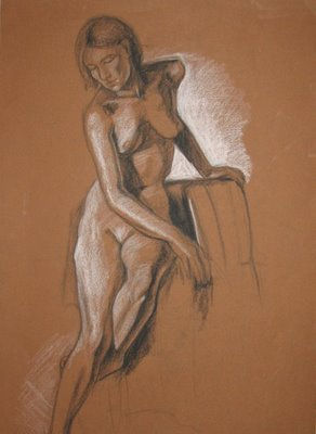 It was Tuesday Night Drawing group. If it weren’t so sacrilegious to say, it was our church. We never missed a Tuesday, even during that terrible snow storm last year. I walked the mile into town to draw. There were about five or six of us who came regularly. We stood behind easels, straddled drawing horses, and sat in folding chairs with drawing boards propped up on our laps. I liked to stand. I tend to move around a lot when I work, stepping back frequently and squinting to check for values and shading.