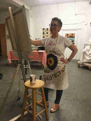 When I go to the studio, I hang up my coat and put on my studio apron. When I return home, I hang up my coat and put on my kitchen apron. My aprons keep my clothes cleaner, certainly, but they are important for managing that mental shift I make everyday from working artist to working mother. And yet, no matter what I'm doing, I'm always an artist and always a mother and always a little bit overwhelmed.