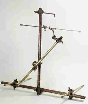 The carvers at the Italian studio will carefully select a piece of statuario marble from the Carrara Mountains. Once the studio receives the carver’s model, they will carve the marble using both traditional tools as well as pneumatic hammers and grinders. They use a pointing machine, or macchinetta di punta (shown left), which is not really a machine at all, but rather a measuring device. This is the traditional manner of carving a sculpture from a carver’s model. When the sculpture is nearly complete, I will arrive at the studio to carve the final details myself. The carving process takes 3-6 months. The image below shows Master Carver Umberto from Studio Antognazzi in Pietrasanta with both the plaster carver's model as well as the in process marble sculpture. Notice how St. Joseph's hands are still surrounded in stone.