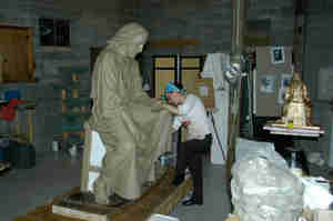 First, I will work closely with the client to narrow down the final project: site design, scale, materials, and timeline and develop a budget. Once the client would like to move forward on a given project, I will first create an 18” scale model of the desired figure or image. Members of an arts committee from the church or organization will weigh in on the design and composition. Changes can easily be made at this scale. It is a collaborative process. Once the client approves of the design, the work on the final full-scale sculpture will commence upon signing a contract and receiving a 1/3 deposit.