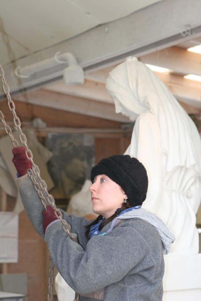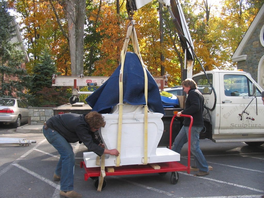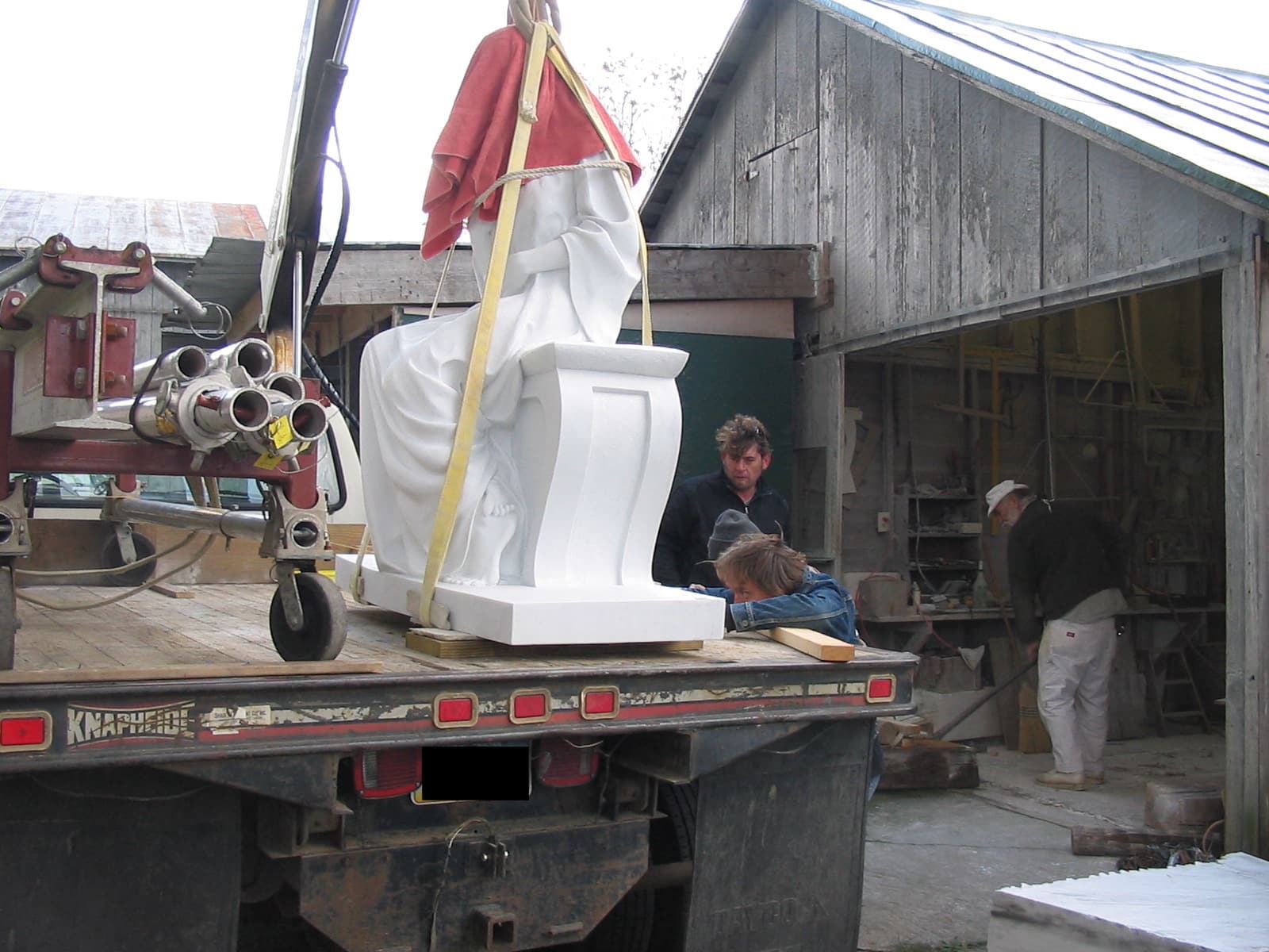 How many people does it take to move a two-ton sculpture of the Blessed Virgin out of the studio, onto a truck, drive sixty-five miles down the road and into a niche in a church? We had quite a crew out there!