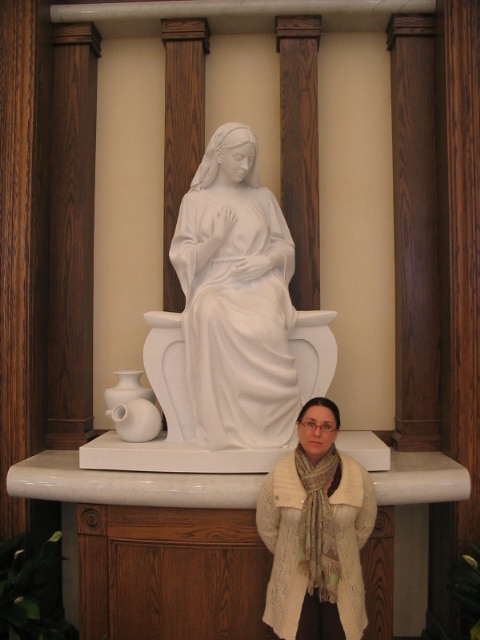 An email from the day before: "We are in the last phase of installation today. Apparently there has been some concern that Mary needs to go on the other side of the church. Several people at the church insisted that she needs to go on the right side of the church. Well, I did much research before embarking on the project and determined that she does indeed need to go on the right, but on the right hand of Christ, which would be the parishioner's left. This is where we have planned to place her. Nonetheless, some people feel uncomfortable with this placement. She and St. Joseph were designed with this in mind and the composition is such that it works with Mary to Christ's right and St. Joseph to His left. Switching that will change the design. Of course, the sculpture does now belong to the church. What do you think we ought to do about this matter?" -Sarah