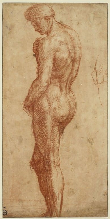 In this drawing, del Sarto used a red chalk, similar to conté crayons, on a toned paper. The Strathmore toned paper or the Canson Ingres paper would be perfect for this drawing. However, if you like to keep your drawings in a notebook, no special paper is needed for Master Drawing Mondays.