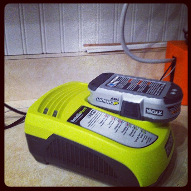 I've had the saw so long that the old battery just doesn't work any more. I sent the hubs to Home Depot to pick up a Lithium Ion Battery last week. Then I realized that I also needed a Lithium Ion charger to go with it. The Home Depot is a good forty minutes away, so I can't just buzz on over there. I planned a trip last Friday. Building a modeling stand has been on hold because of this silly battery charger. All charged now. Tomorrow I plug it into the saw and build my stands. ONWARD!