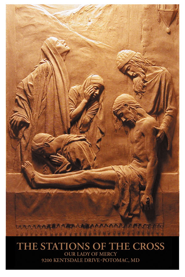 From May 2001 until the following May, we created fourteen four-foot by two-foot multifigure composition bas-reliefs. We collaborated on the design as a whole so that we would have a cohesive set, but we were each responsible for articulating seven in clay. We worked for very little pay, but sometimes when you are young you can get by on enthusiasm. That entire year, we spent contemplating the journey of Christ to the tomb, as each image had us concentrating on a particular aspect of the Passion. The new church building opened with all fourteen Stations of the Cross in place.